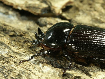 アルゼンチンやブラジル、パラグアイ、ウルグアイなどに分布するコカブトの仲間で、正式な名前はArchophileurus chaconus (Kolbe,1910)という種類になる。コカブトの仲間は雌雄の区別が付きにくい種が多いが、この種の♂の頭部には二本の角があり、♀は一対の小さな突起がある雌雄異形のコカブトだ。上2枚は♂の、下2枚は♀の画像になる。♀には角が無いのがおわかりだろうか。